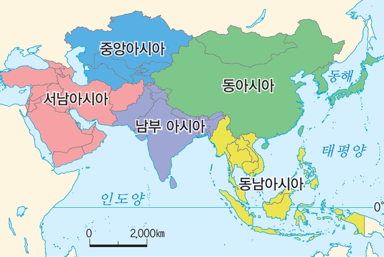 - 아시아의 지리적 범위: 아시아는 서쪽으로 유럽과 아프리카에 접해 있고, 동쪽으로는 태평양, 남쪽으로는 인도양과 맞닿아 있는 대륙입니다. 아시아는 동아시아, 동남아시아, 남부 아시아, 서남아시아, 중앙아시아로 크게 나눌 수 있습니다.