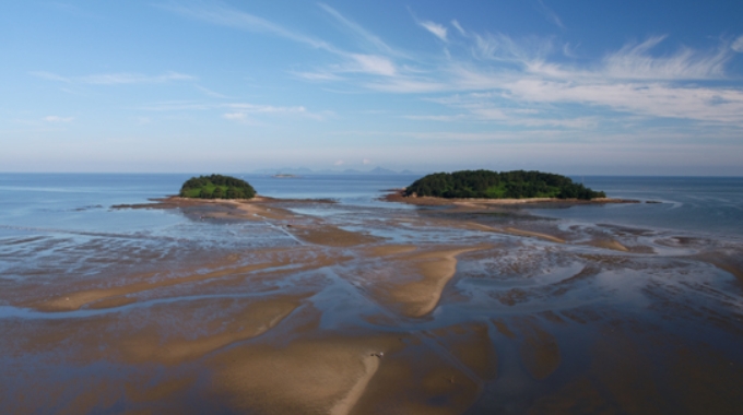 또한, 이 지역은 조차(潮差)가 크기 때문에 썰물 때 넓은 갯벌이 드러납니다. 갯벌은 염전으로 활용되거나 굴과 조개 등을 양식하는 데 이용되며, 최근에는 생태 학습장이나 관광지로도 주목받고 있습니다. 이 외에도 갯벌은 간척 사업을 통해 농경지나 공업 단지로 개발되기도 합니다.