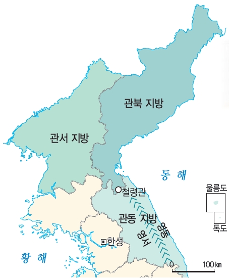 관동 지방 철령관의 동쪽 지역(강원도 지역)