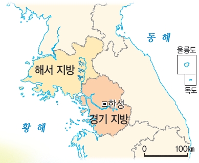 • 경기 지방: 도읍지(한성)를 둘러싸고 있는 지역