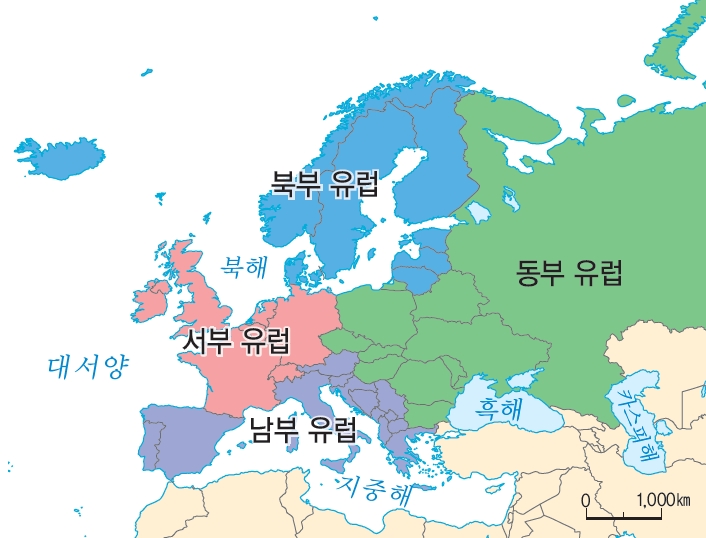 | 남부 | 이탈리아, 에스파냐, 포르투갈, 그리스 등 |