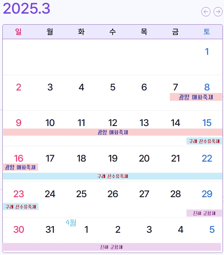 - 장소: 전라남도 광양시 다압면 매화마을 일원